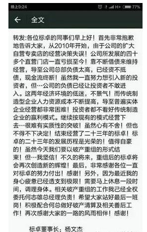 下面是董事長楊文杰宣布破產(chǎn)的原因: