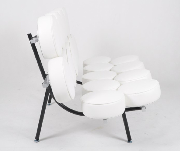 國(guó)內(nèi)設(shè)計(jì)師也常常稱其為向日葵沙發(fā),18個(gè)舒適的圓形坐墊漂浮在沙發(fā)架上,造型別致而實(shí)用——軟墊拆卸方便,有利于交替各個(gè)位置保持沙發(fā)整體的均勻使用度。