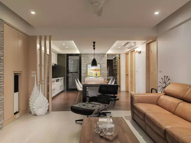 開放的客廳餐廳廚房,空間更好的展現(xiàn)在我們眼中。餐椅使用伊姆斯餐椅。