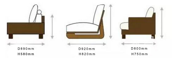 沙發(fā)的“健康指數(shù)”和“舒適指數(shù)”是由以下因素決定的:坐墊的深度、靠背高度、回彈性。