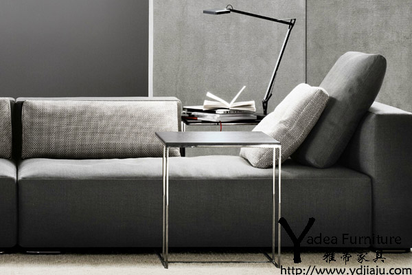 - 產(chǎn)品簡介:As if the sofa is seeking company,a piece of furniture to communicate with. Leger does not shirk this ressponsibility;this is the way it is: open,useful,flexible,versatile,solid,hand-crafted iron frame;multiple tops for alternative characters:ground sheet metal,black leather,burled walnut.