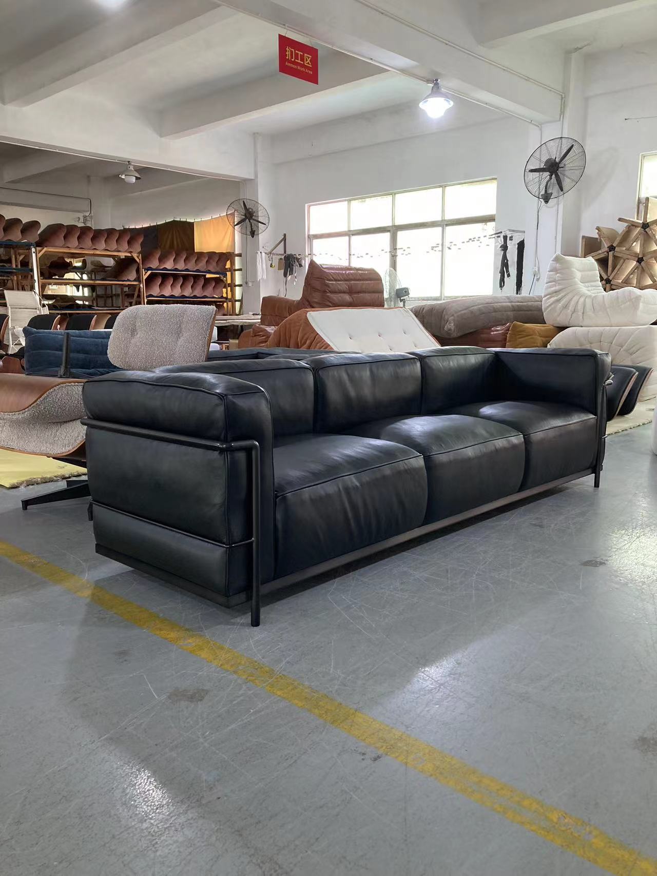 在深圳德洛,于中古家具工廠(chǎng)的一隅,經(jīng)典正悄然蘇醒 —— 柯布西耶 LC3 真皮沙發(fā),
