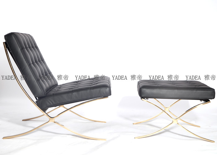 - 產(chǎn)品簡(jiǎn)介:巴塞羅那椅是密斯.凡.德羅在1929年為巴塞羅那世博會(huì)設(shè)計(jì)的作品,這款土豪金巴塞羅那椅由鍍金不銹鋼腳與進(jìn)口真皮相結(jié)合,材料搭配受到了很多著名設(shè)計(jì)師與電影人的喜愛(ài),在美國(guó)與歐洲也開(kāi)始慢慢流行,那邊的設(shè)計(jì)師開(kāi)始尋找類似于這類的產(chǎn)品,所以如果您家添置這樣的產(chǎn)品無(wú)疑是超時(shí)尚的。