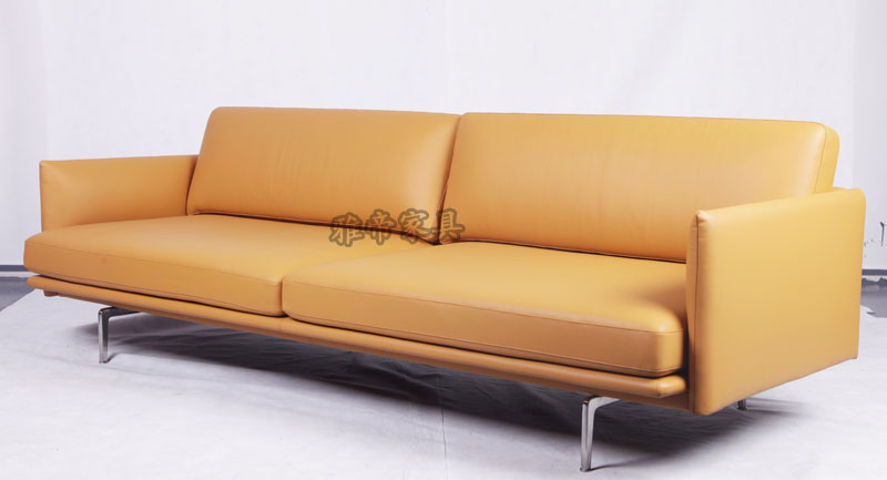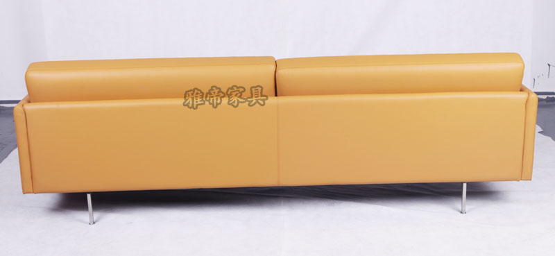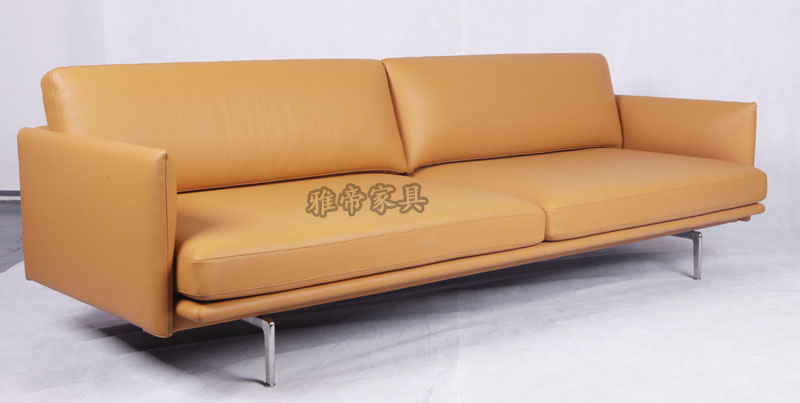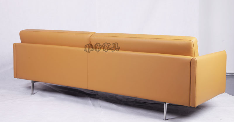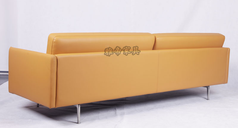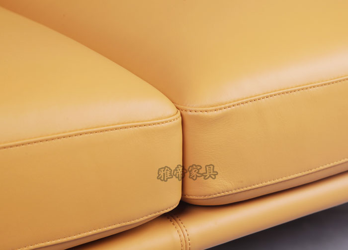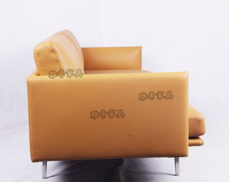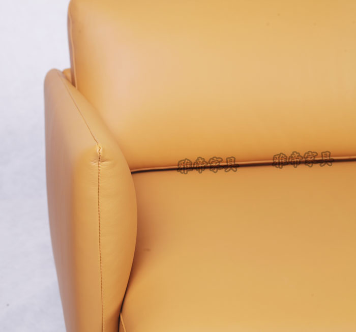 基本材質描述:內置木架,全進口青皮,高彈海棉,布藝,不銹鋼腳。